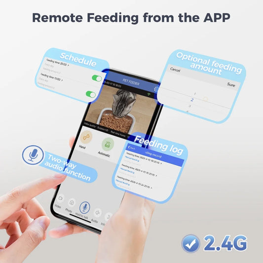 Automatic Cat Feeder with Camera & Night Vision, Wifi Cat Food Dispenser Dog Timed Feeder Two-Way Audio 6L Pet Feeder for Cat/Dog, APP